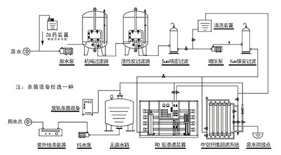 由于原水水質(zhì)對處理工藝影響較大,上述的工藝流程僅為參考的基本工藝流程,詳細(xì)的工藝流程需要我公司的技術(shù)人員根據(jù)原水水質(zhì)、產(chǎn)水要求、產(chǎn)水量以及客戶的特殊要求等條件具體設(shè)計。因此,在選用設(shè)備之前,請客戶提供詳細(xì)的水質(zhì)分析資料及相關(guān)條件。