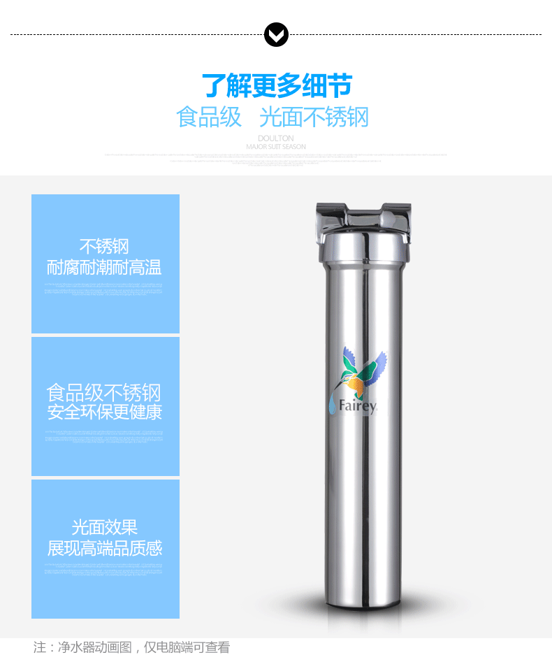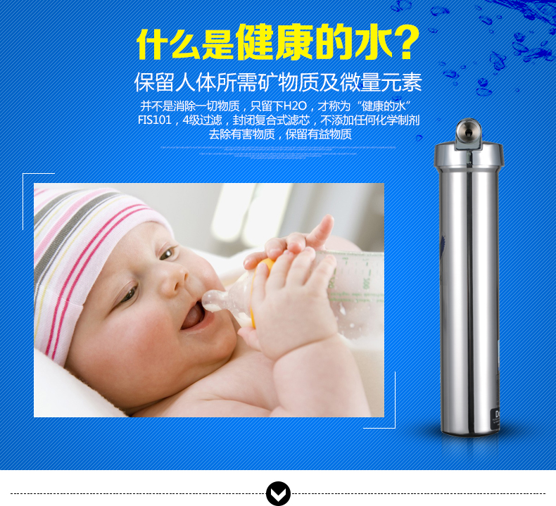 產(chǎn)品類型:臺下型,獨立龍頭 機身材質(zhì):304食品級光面不銹鋼 出水流量:120公升/小時 最低水壓:1bar 過濾的精度:0.5微米 使用的范圍:僅用于市政自來水過濾 機身重量:2.25kg,濾芯使用壽命:1-2年 是否廢水:無需用電,不產(chǎn)生廢水 操作的溫度:5-38度 產(chǎn)品保修期:一年