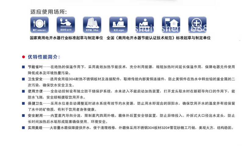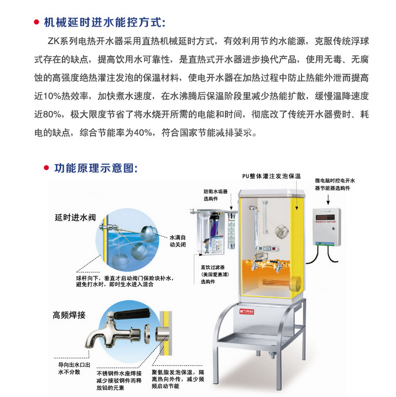 ■微電腦智能控制,兩水箱設(shè)計,沸騰加熱煮水、儲水保溫智能獨立互鎖控 制系統(tǒng),水不開不出水,確保100%溫開水。自動防溢流控制系統(tǒng)、自動防 干燒缺水?dāng)嚯娤到y(tǒng)雙重安全保護系統(tǒng)。水不開不出水,確保提供連續(xù)100% 溫開水。
