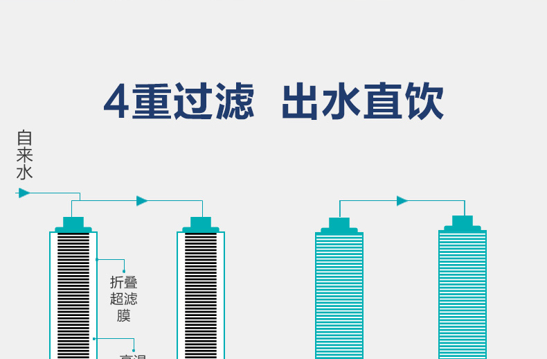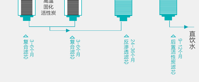 濾芯組合:2*復(fù)合濾芯+RO反滲透+后置活性炭
