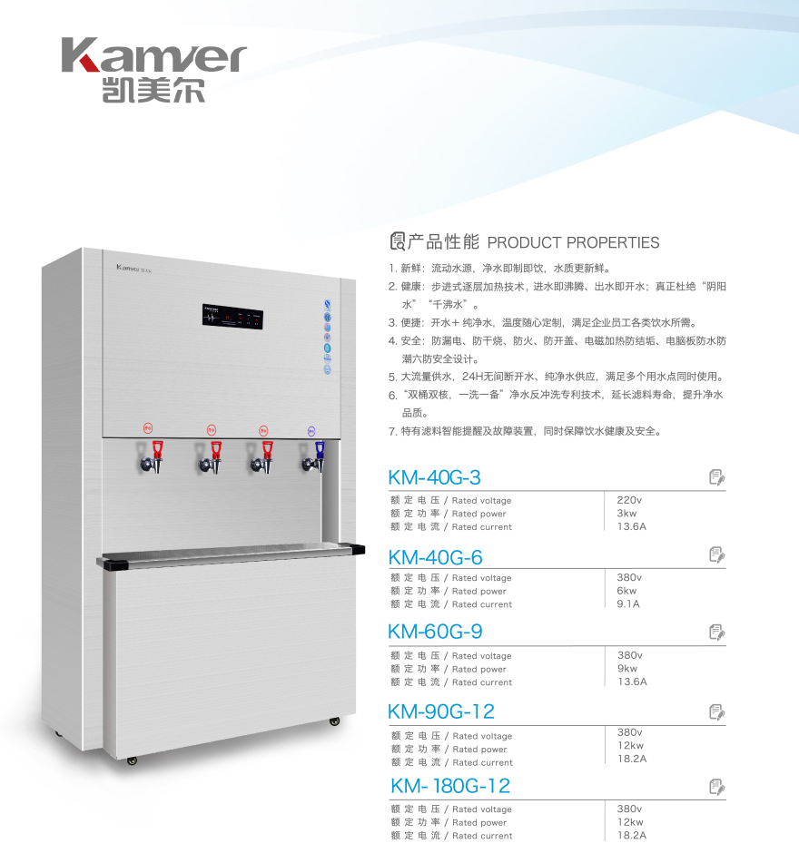 2、 健康:步進(jìn)式逐層加熱技術(shù),進(jìn)水即沸騰、出水即開水;真正杜絕 “陰陽水” “千沸水”擔(dān)憂。